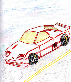 This picture is called "Dream Car" I drew this shortly after I got my licence wishing I had a car like it to cruise around in :) I used markers for the car and coloured pencils for the background. |